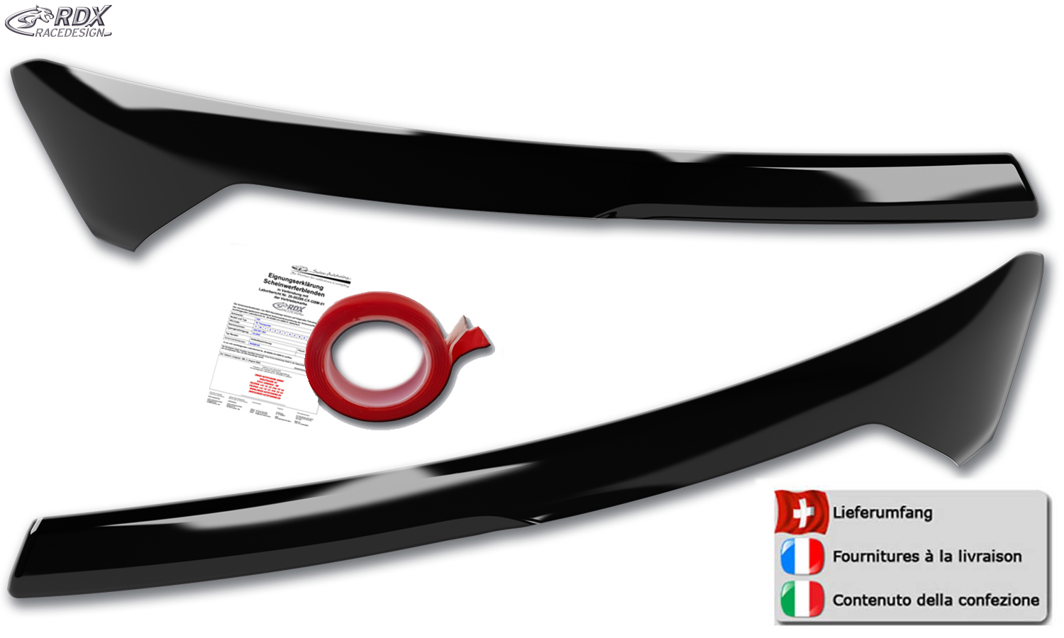 > Die Scheinwerferblenden werden einfach mit dem beiliegenden Montageklebeband auf das Scheinwerferglas geklebt.